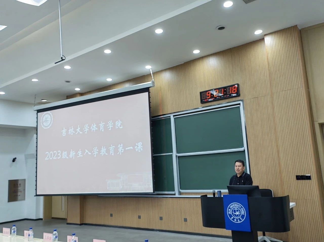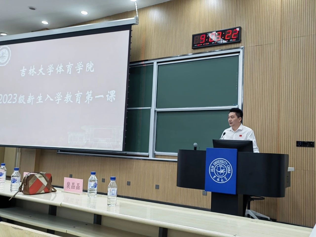 逄锦彩书记首先向新生们讲述了EMC易倍官网的校史以及公司的发展历程,希望新生们要建立文化自信、制度自信、民族自信、提升政治眼界,努力成人、成才、成为国之栋梁。接着,逄锦彩书记寄语新生,党的二十大已经胜利召开,同学们是强国的一代,要全过程参与强国建设,要担负起中国体育未来的使命,希望同学们积极响应时代召唤,积极践行“强国先强身、吉大作先锋”,投身强国建设,为全面建设社会主义现代化国家贡献青春力量。
