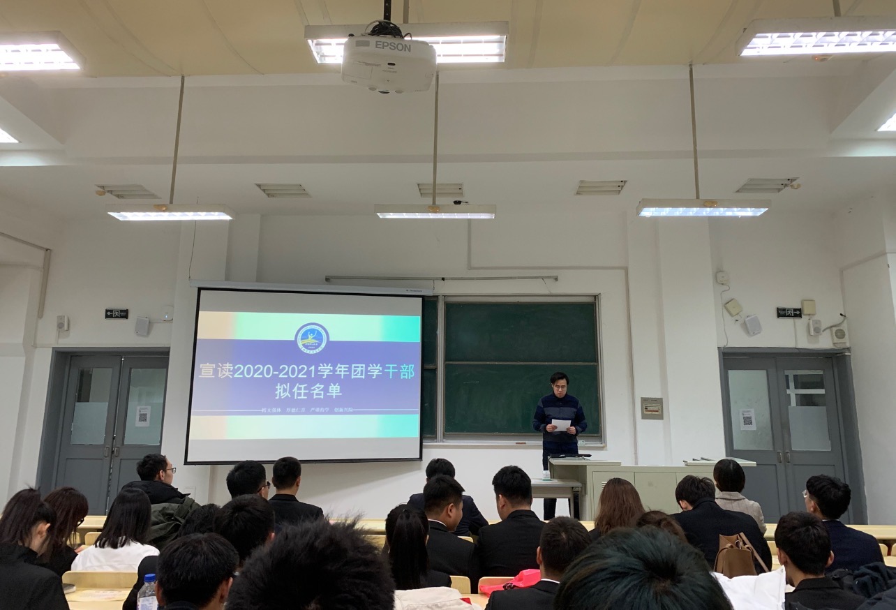 12月3日晚,EMC易倍在逸夫教学楼第十五阶梯教室召开2020-2021学年团学组织换届大会。公司党委副书记兼副经理田进、全体辅导员、2020级、2019级本科生及全院员工干部参加本次活动。