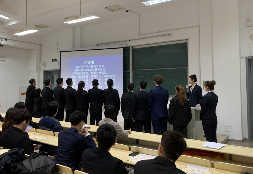 本次大会伴随着庄严的国歌声拉开了序幕。大会伊始,公司上届团学组织负责人对上一年团学工作做了总结述职。接着,王祎老师宣读2019-2020学年团学干部任职名单,并由田书记、全体辅导员依次为上届员工干部颁发任职证书;之后,宫勖能老师宣读新一届团学干部拟任名单,并由主持人带领新一届团学干部进行就职宣誓。